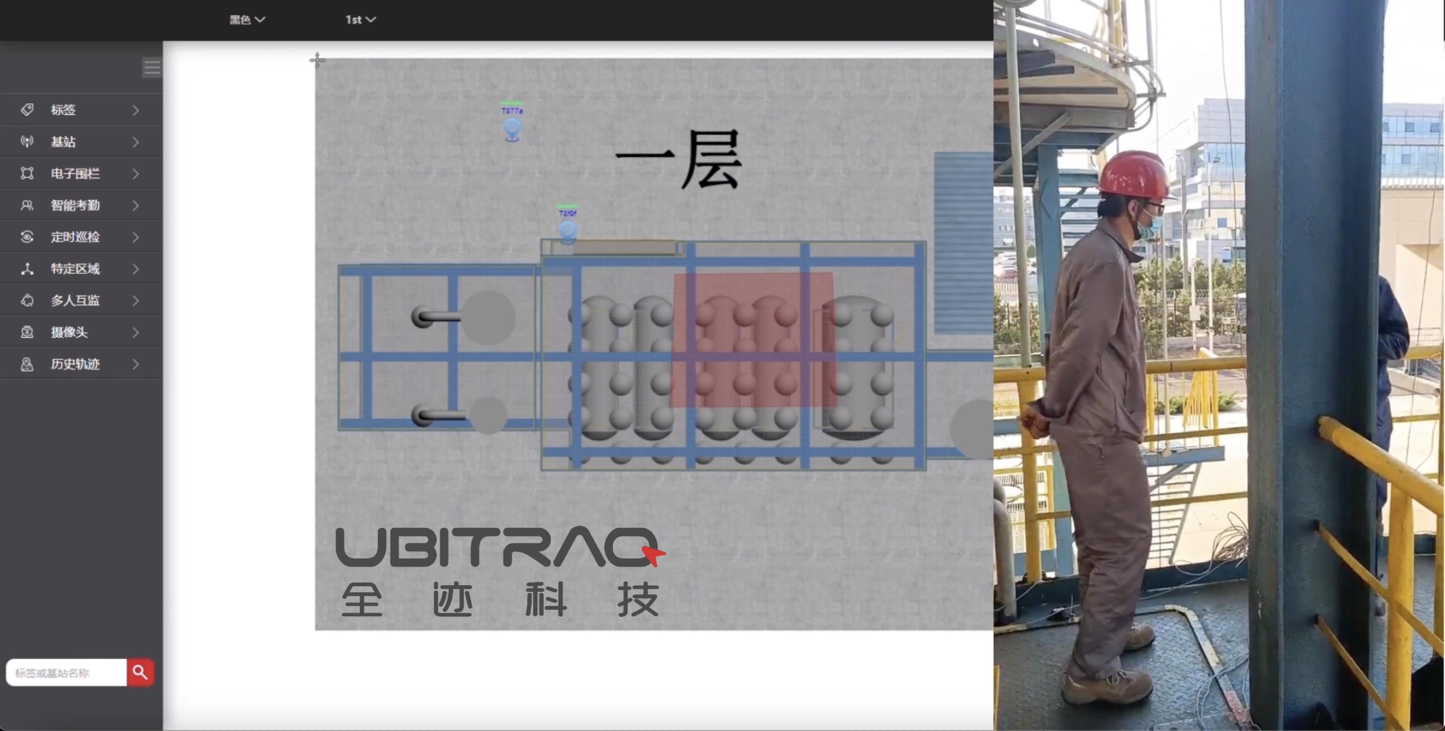 此視頻為廠區內人員定位展示: 廠區環境復雜、遮擋嚴重,UWB定位技術可靠性和穩定性優勢得到發揮