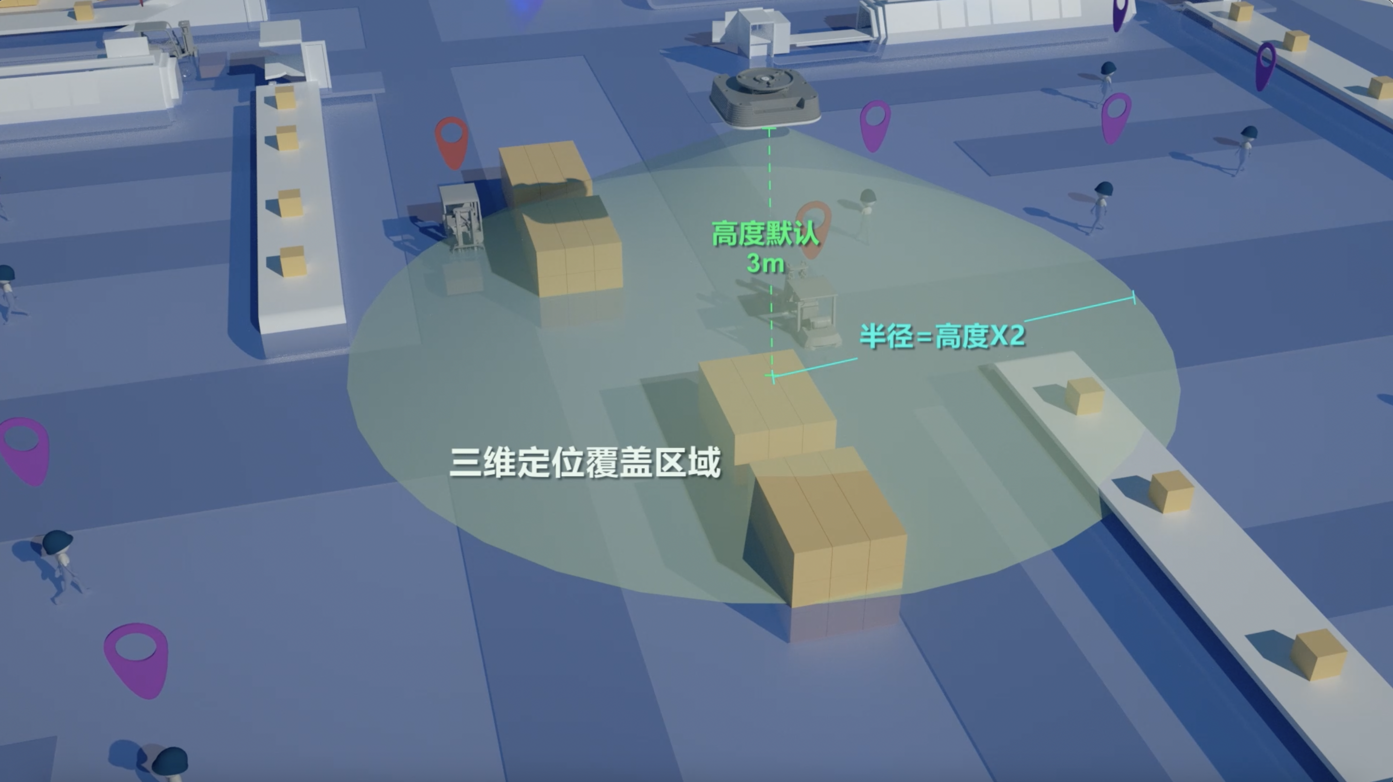 此視頻為UWB-AOA定位單基站展示: 1臺定位基站,可實現1000㎡覆蓋范圍,大幅降低施工和造價成本