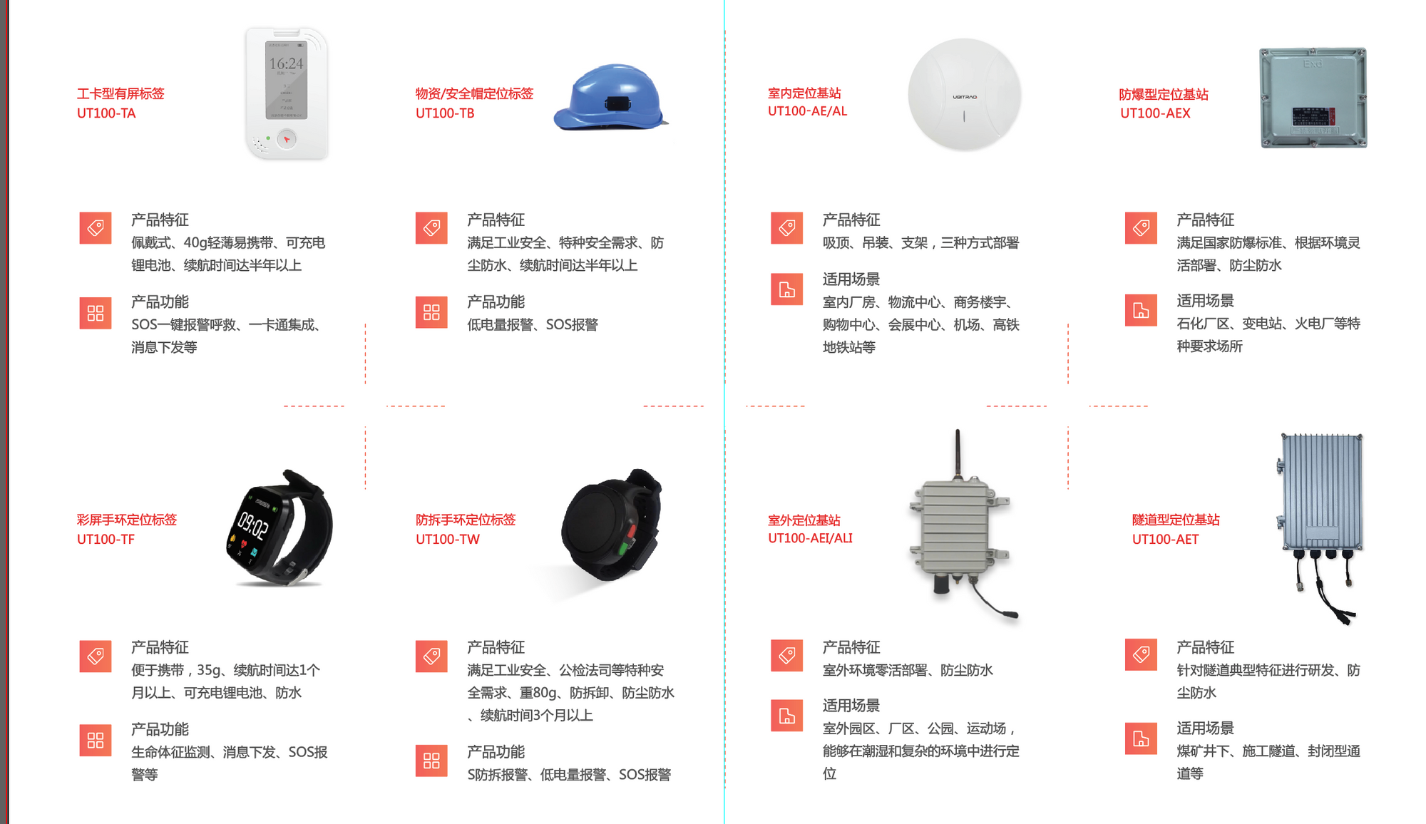 全跡科技UWB標(biāo)簽根據(jù)被定位角色可分為人標(biāo)簽、車標(biāo)簽、物標(biāo)簽三大類。工卡型標(biāo)簽輕薄易佩戴可實(shí)現(xiàn)LED、蜂鳴器、振動提醒、SOS一鍵報(bào)警、一卡通等功能;安全帽/物資標(biāo)簽小巧易固定,長續(xù)航、上述功能可選;車載測距標(biāo)簽支持車輛間、人車間、車輛與障礙物間的測距報(bào)警。全跡科技UWB產(chǎn)品可滿足主流市場不同用戶的定位需求。