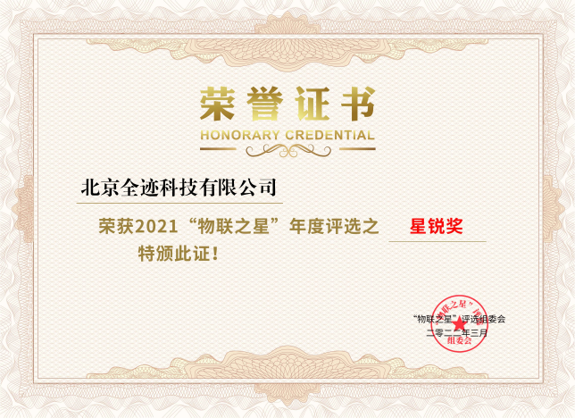 全跡科技上榜物聯(lián)之星2021年度十大星銳企業(yè)