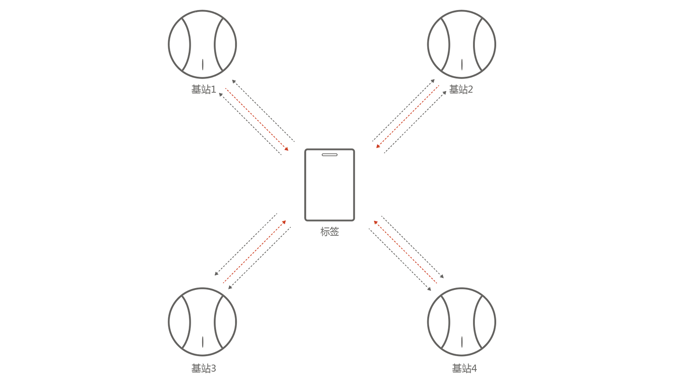 標簽和基站之間會通過無線收發(fā)至少3次交互之后,可以得到標簽和基站之間的距離信息。