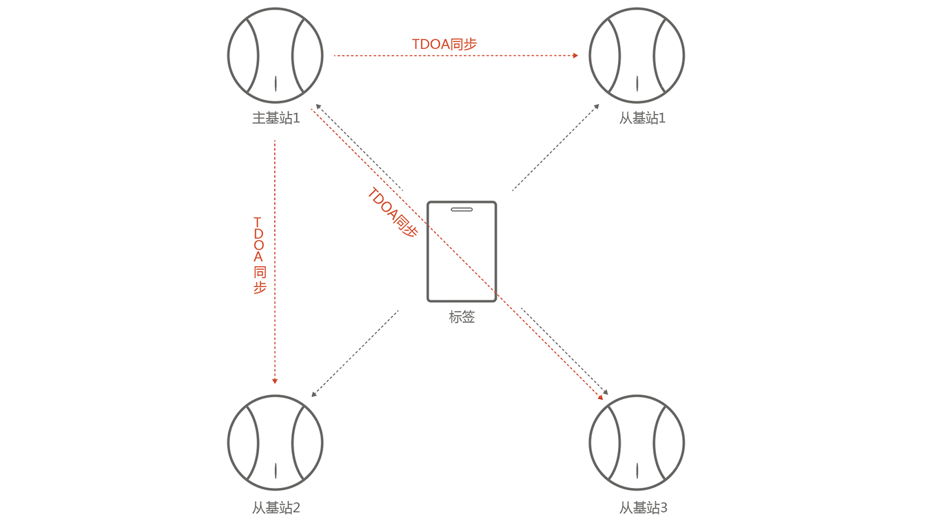 到達時間差(TDoA)技術,以三角形或者四邊形為最小單位,同步方式可以做到主基站同步從基站,而且主基站也可以同步其他主基站,這樣只需要注意基站在現(xiàn)場布局形狀,就可以做到無限基站的擴展;而且增加的基站不會對其他現(xiàn)有的基站造成任何影響。