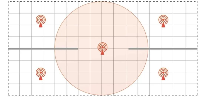 UWB-AOA單基站和傳統UWB基站部署方式和數量對比圖