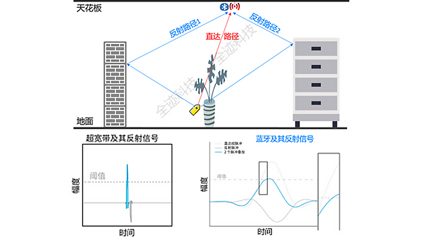 藍牙AOA:藍牙技術無法區分直達和反射路徑,測得的是包含墻壁等障礙物反射后的混疊信號,在復雜環境下定位精度低、穩定度差。