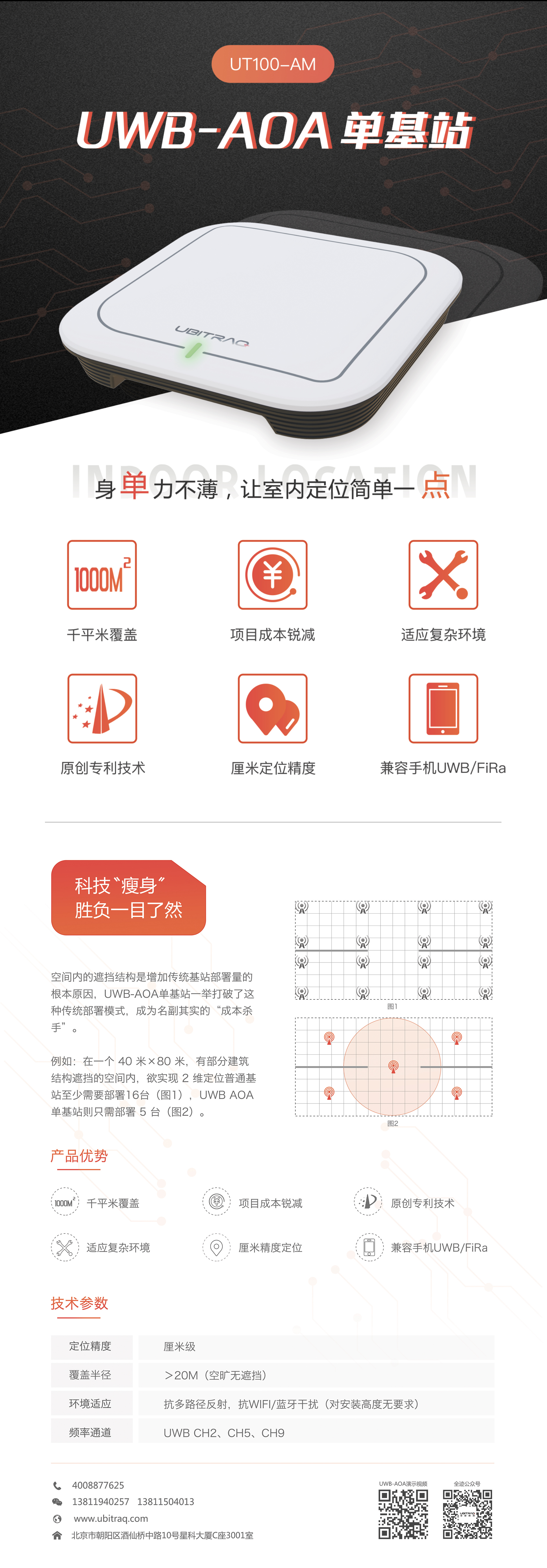 UWB-AOA:單基站覆蓋半徑>20米,對安裝高度無要求