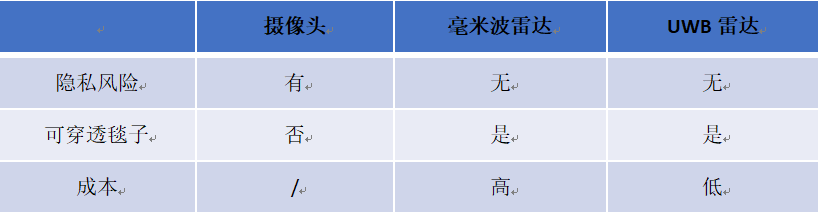 1.活體檢測(cè)“將兒童單獨(dú)留在停放的車(chē)內(nèi),即使只有幾分鐘,也可能導(dǎo)致中暑和死亡,尤其是當(dāng)汽車(chē)暴露在陽(yáng)光下時(shí)。兒童無(wú)法自行下車(chē),再加上對(duì)高溫的耐受性較低,因此要求兒童不得留在車(chē)內(nèi)無(wú)人看管。溫度可以在短短15分鐘內(nèi)達(dá)到臨界水平,讓窗戶(hù)半開(kāi)著幾乎不能減少威脅。與車(chē)禍相比,兒童死于車(chē)輛相關(guān)中暑的情況較少發(fā)生,但這些完全可以避免的死亡的性質(zhì)值得特別關(guān)注,因?yàn)榻鉀Q車(chē)內(nèi)兒童體溫過(guò)高問(wèn)題的技術(shù)已經(jīng)存在。”以上文字來(lái)自歐洲NCAP關(guān)于兒童存在檢測(cè)的測(cè)試與評(píng)估標(biāo)準(zhǔn)的直接翻譯。活體檢測(cè)在汽車(chē)上主要用于兒童存在檢測(cè)(CPD – Child Presence Detection),國(guó)外也有叫后排占用告警(ROA - Rear Occupant Alert)或Hot Car。歐洲NCAP計(jì)劃從2023年1月起增加對(duì)車(chē)內(nèi)兒童存在檢測(cè)的評(píng)分,各項(xiàng)規(guī)定非常細(xì)致。美國(guó)正在立法要求所有新車(chē)預(yù)裝兒童存在檢測(cè)功能,預(yù)計(jì)在2025年全面實(shí)施。據(jù)說(shuō)國(guó)內(nèi)相關(guān)規(guī)范也在評(píng)估制訂中。目前車(chē)內(nèi)兒童存在檢測(cè)的識(shí)別方式有直接與間接兩大類(lèi)。直接方式指的是通過(guò)嘗試檢測(cè)心跳、呼吸、運(yùn)動(dòng)、或其它生命指征來(lái)判定兒童是否存在;間接方式指的是通過(guò)一些邏輯信息來(lái)推斷車(chē)內(nèi)人員存在的可能性,信息可能包括:車(chē)門(mén)打開(kāi)、壓力感應(yīng)、電容感應(yīng)等。直接方式最準(zhǔn)確,目前較有效的直接方式傳感器主要是:攝像頭、毫米波雷達(dá)、UWB雷達(dá),下面做簡(jiǎn)要比較。
